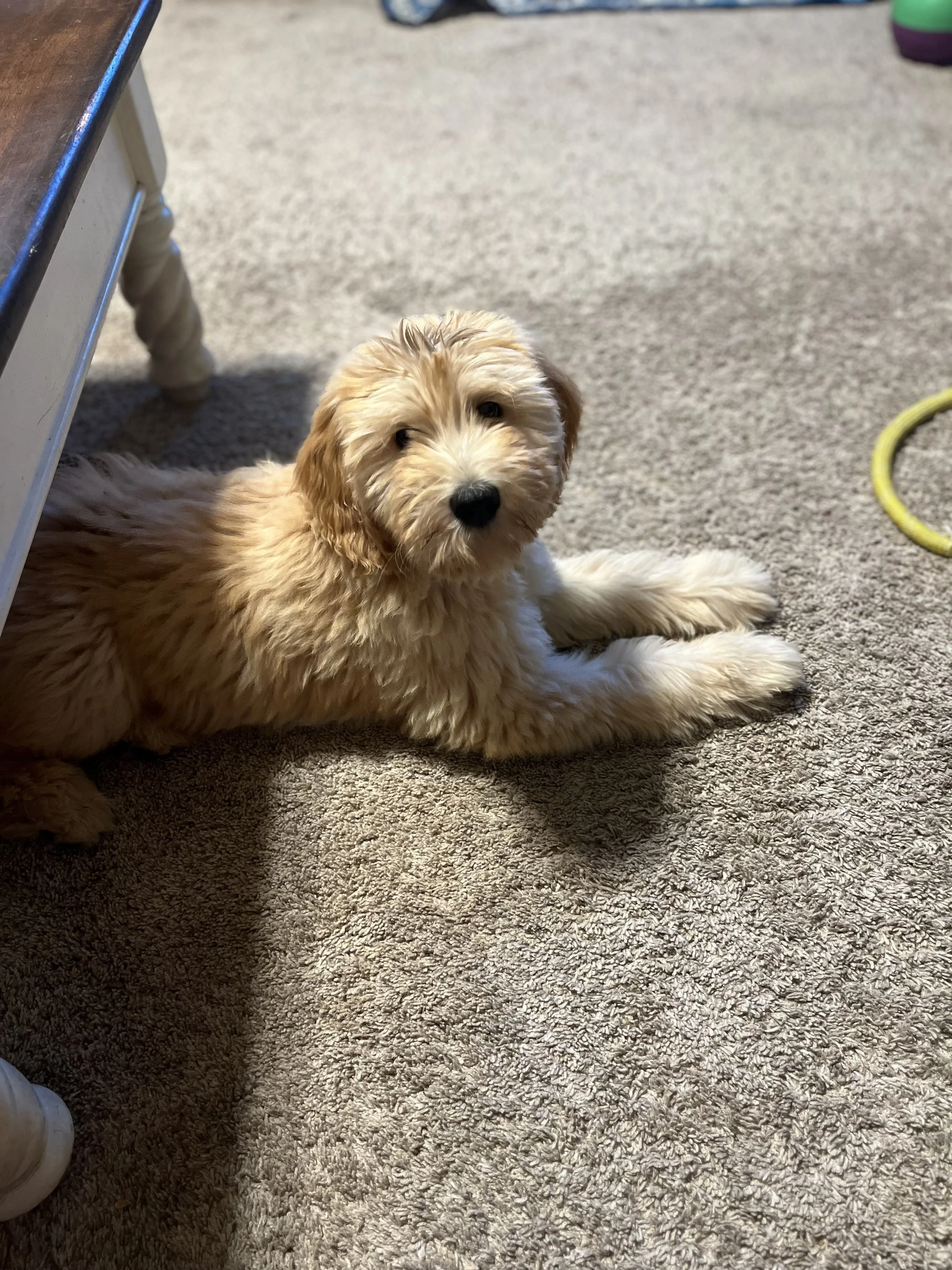 Brownie is doing well with crate training, comfortably staying in his crate for 10 hours at night without accidents. While he's still working on letting us know when he needs to go outside, he reliably potties every time he is taken out. Brownie is a smart, loving puppy who will follow you anywhere, and he can't wait to become your loyal companion.