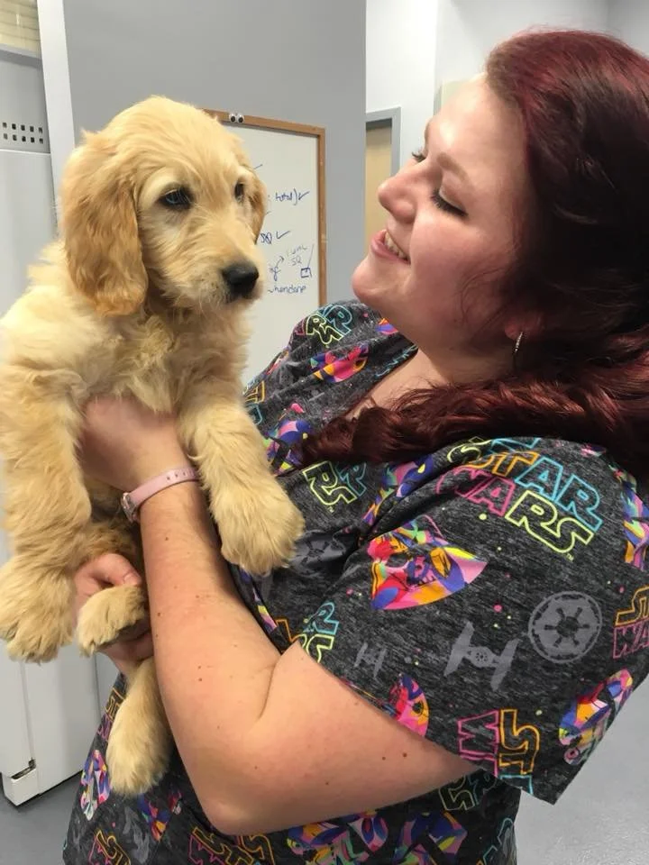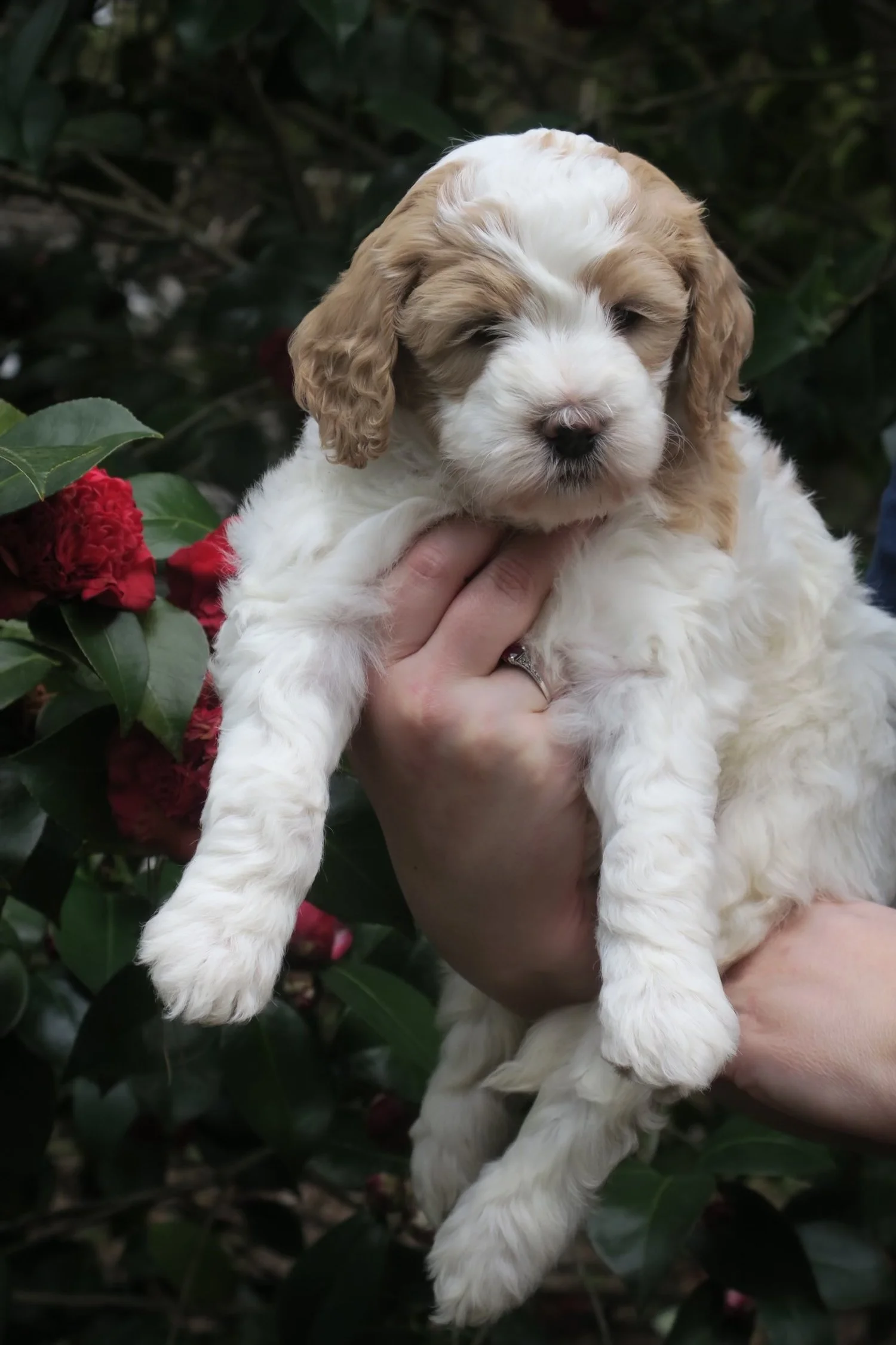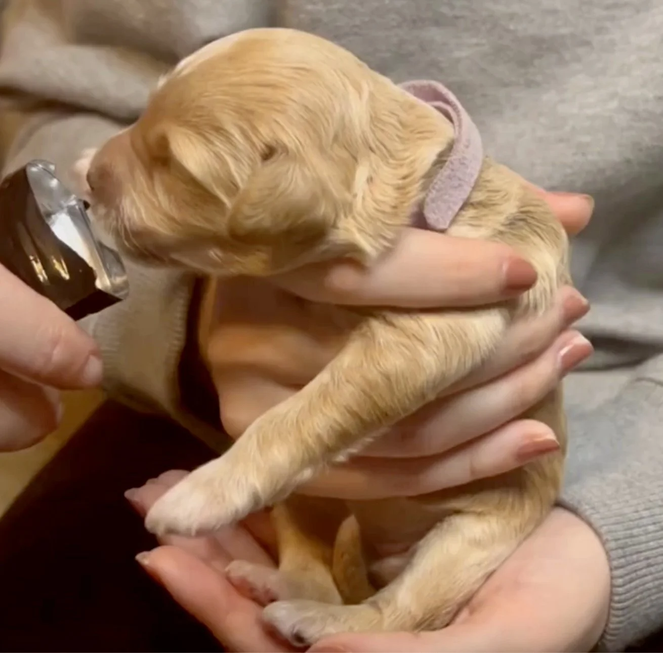Each of our puppies is handled daily with safe and gentle touch, increasing in pressure as they grow. While some enjoy it more than others, all puppies are being desensitized to human touch and held close to face and heart.